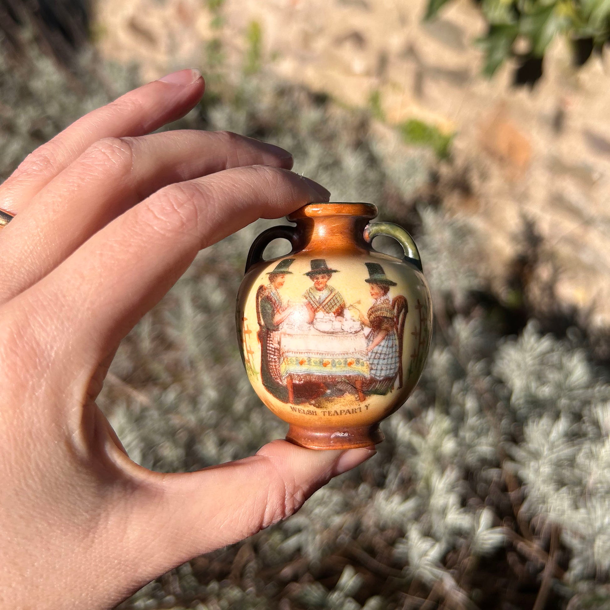 - 'Welsh Tea Party' miniature vase displaying three ladies enjoying a cup of tea