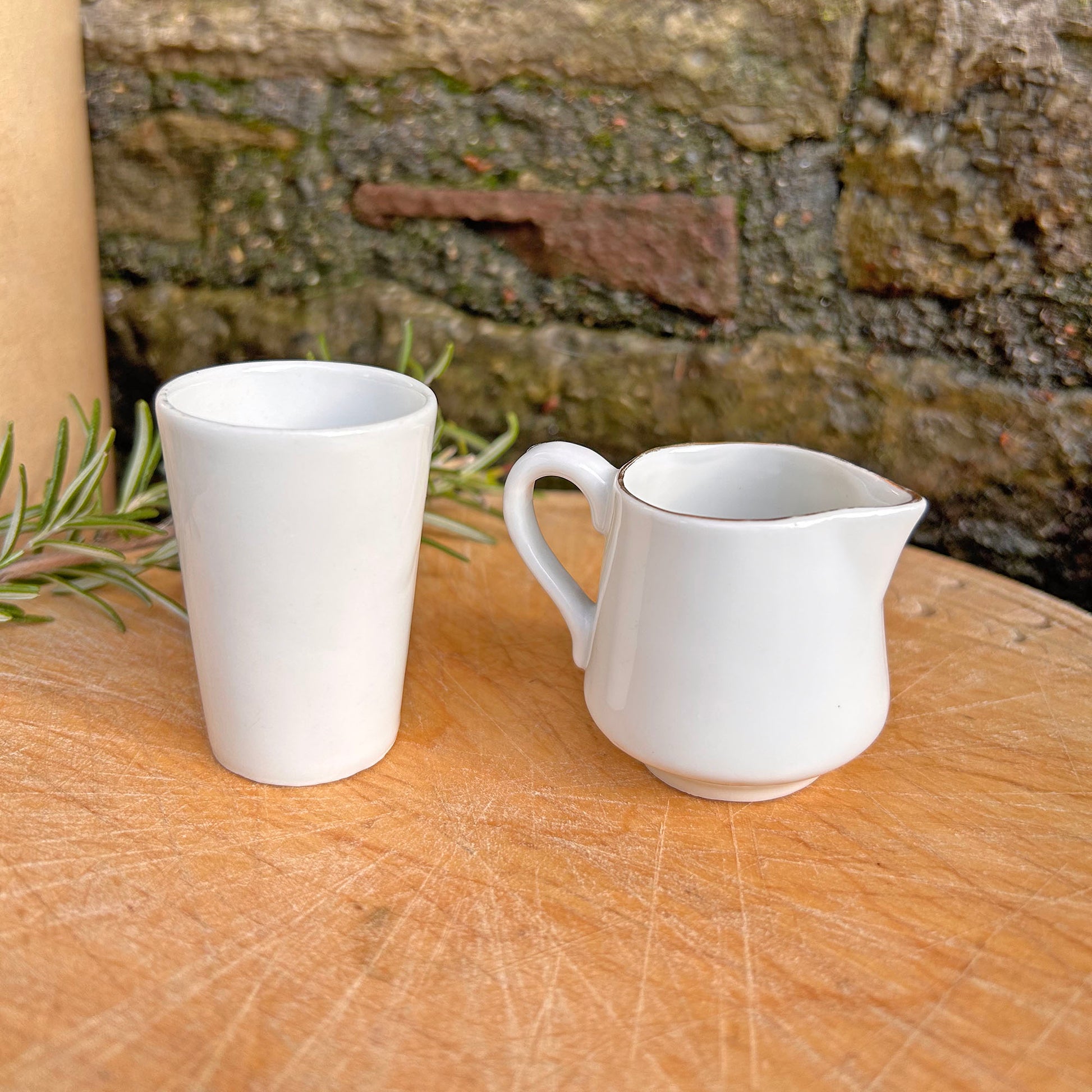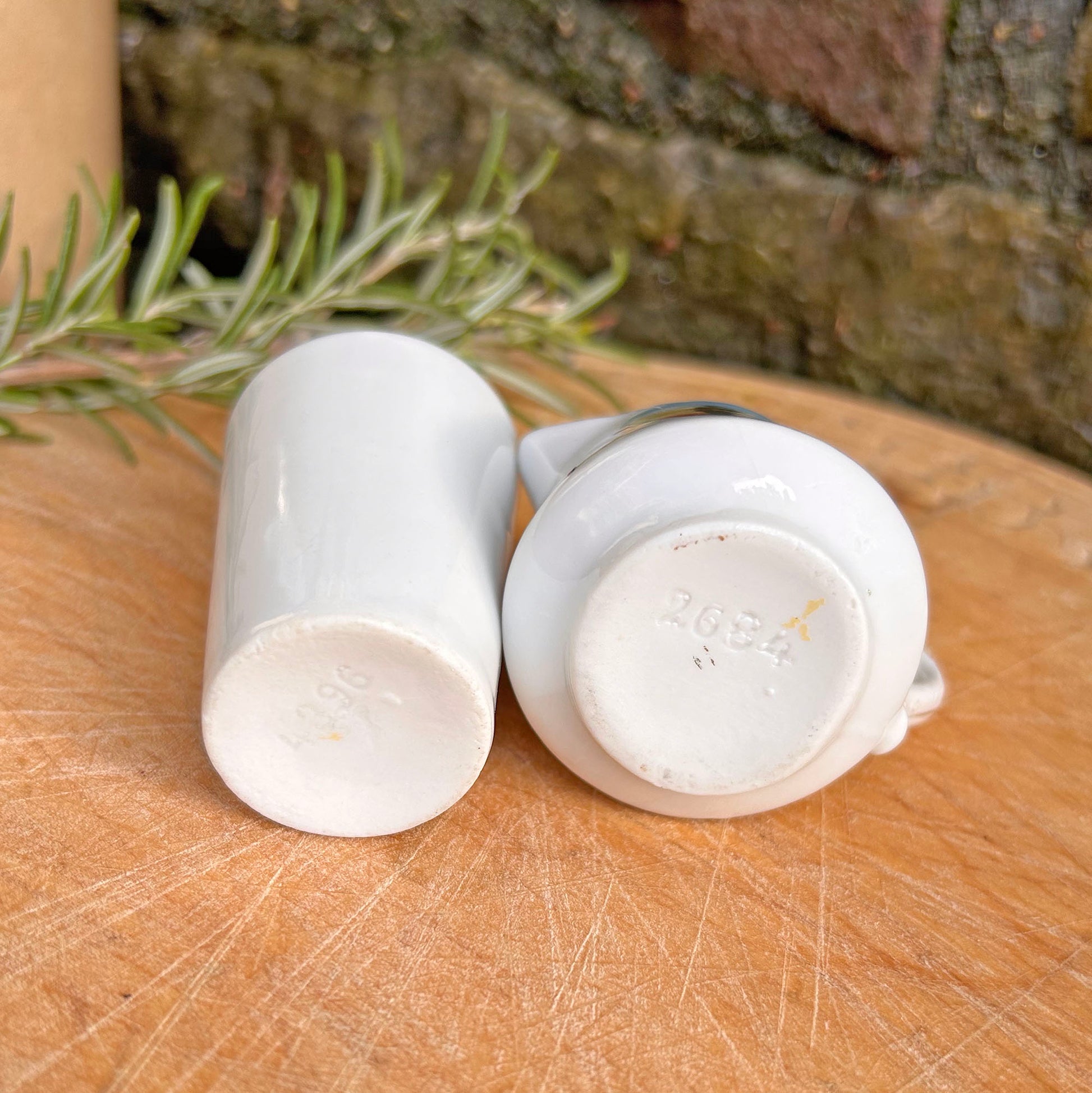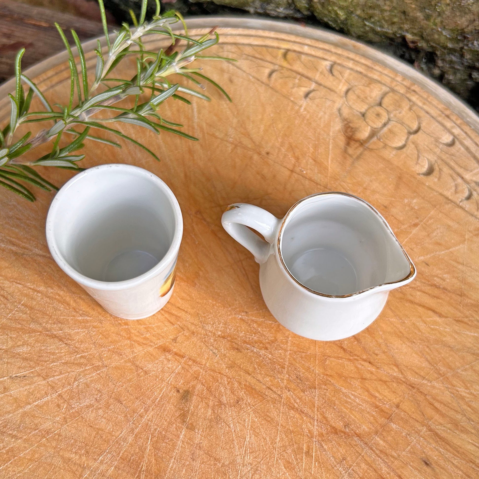 - Measurements: pot: 5.5cm tall, widest diameter 3.7cm; jug 6cm spout to handle, 4cm tall