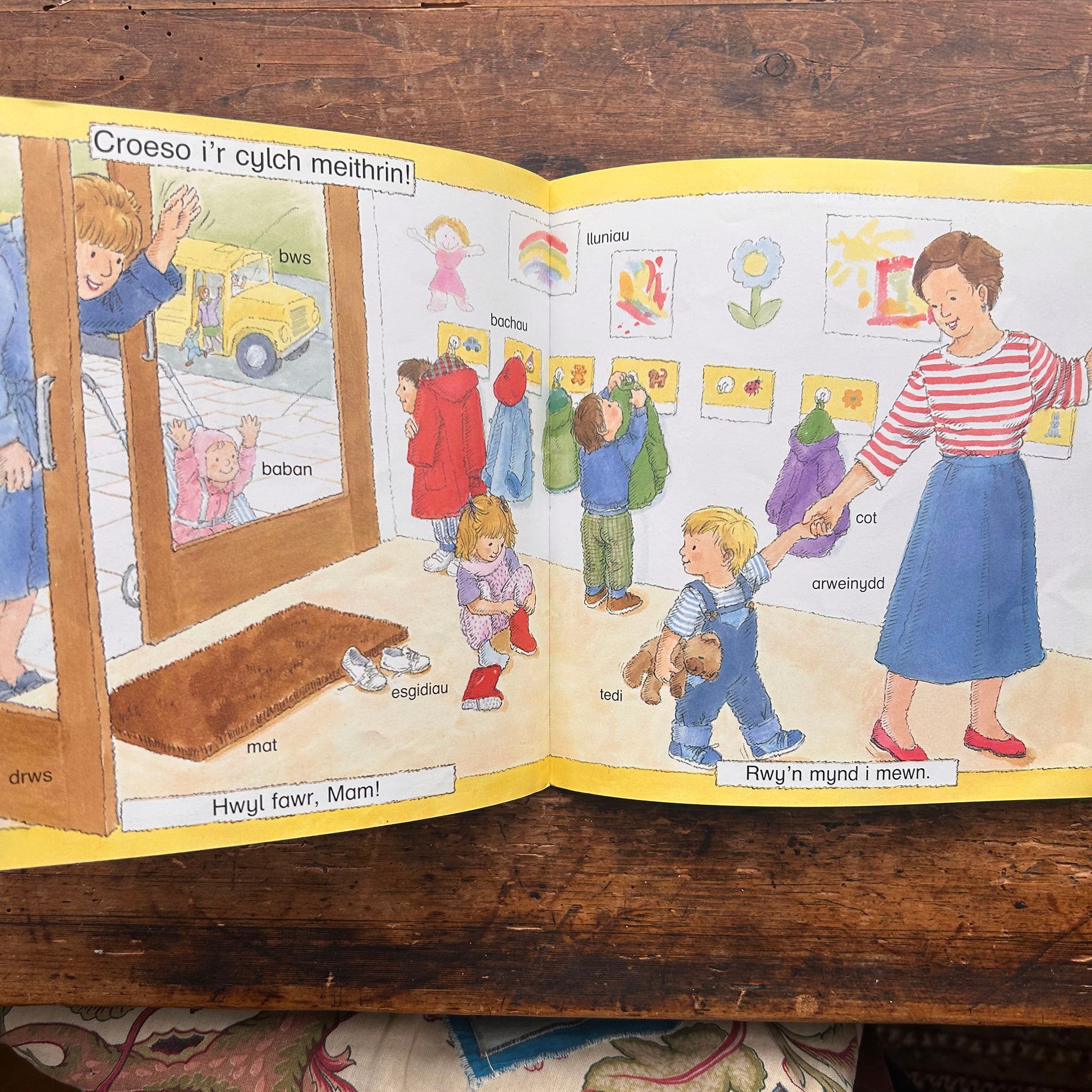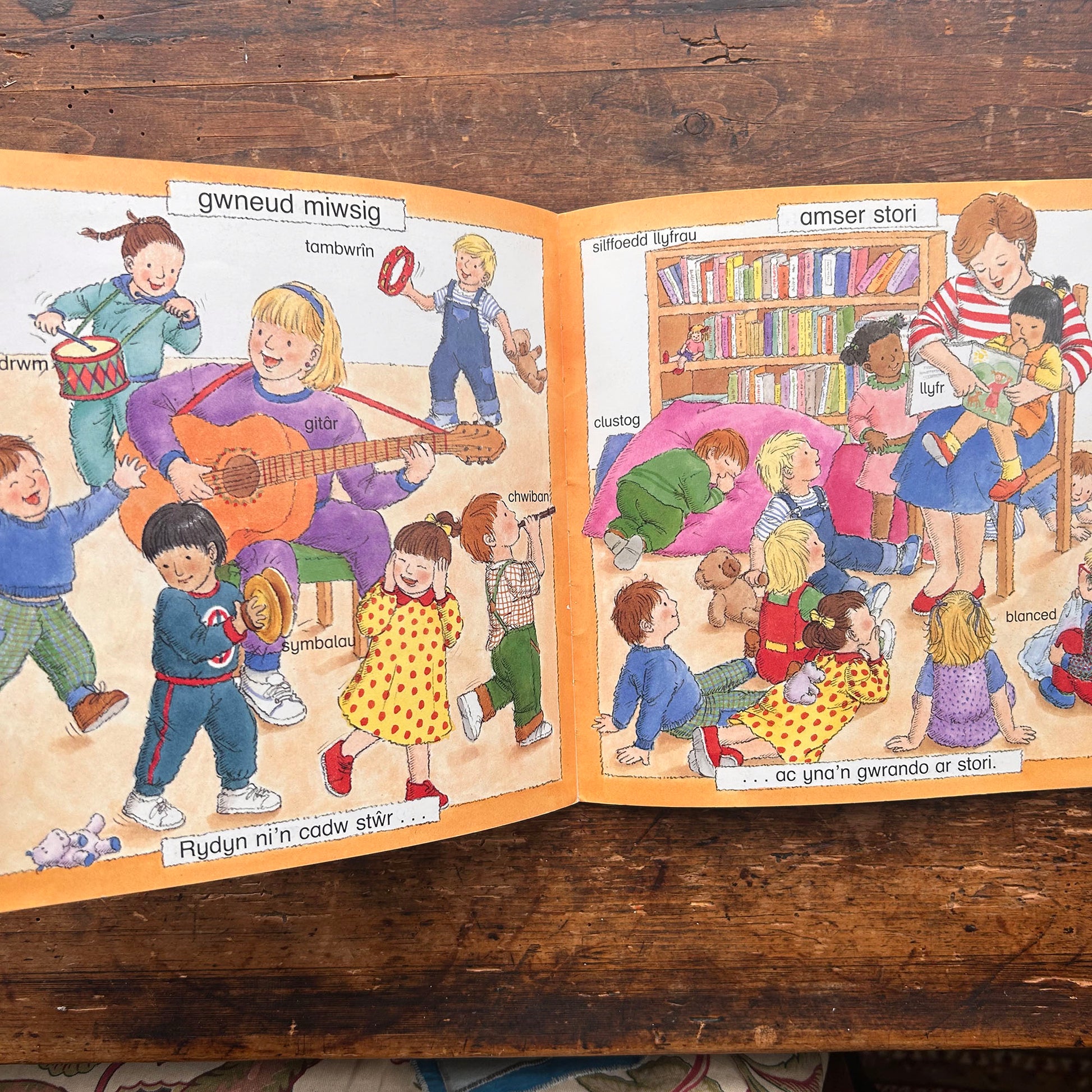 This lovely book introduces your child to the happy world of a Welsh playgroup. There is a Welsh-English vocabulary on the final page.