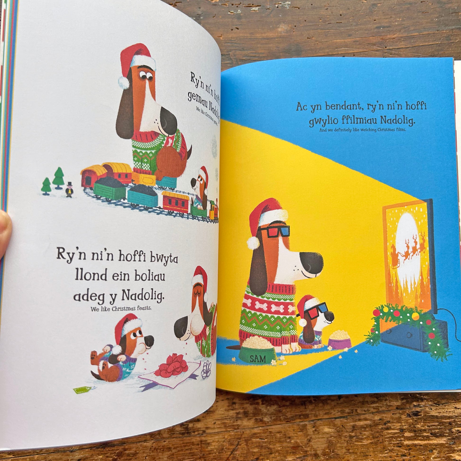 Grumpy Sam is back! It's Christmas, but Sam is not a fan. Can this grumpy dog learn to love the season of goodwill? A Welsh adaption of Merry Christmas, Gus.