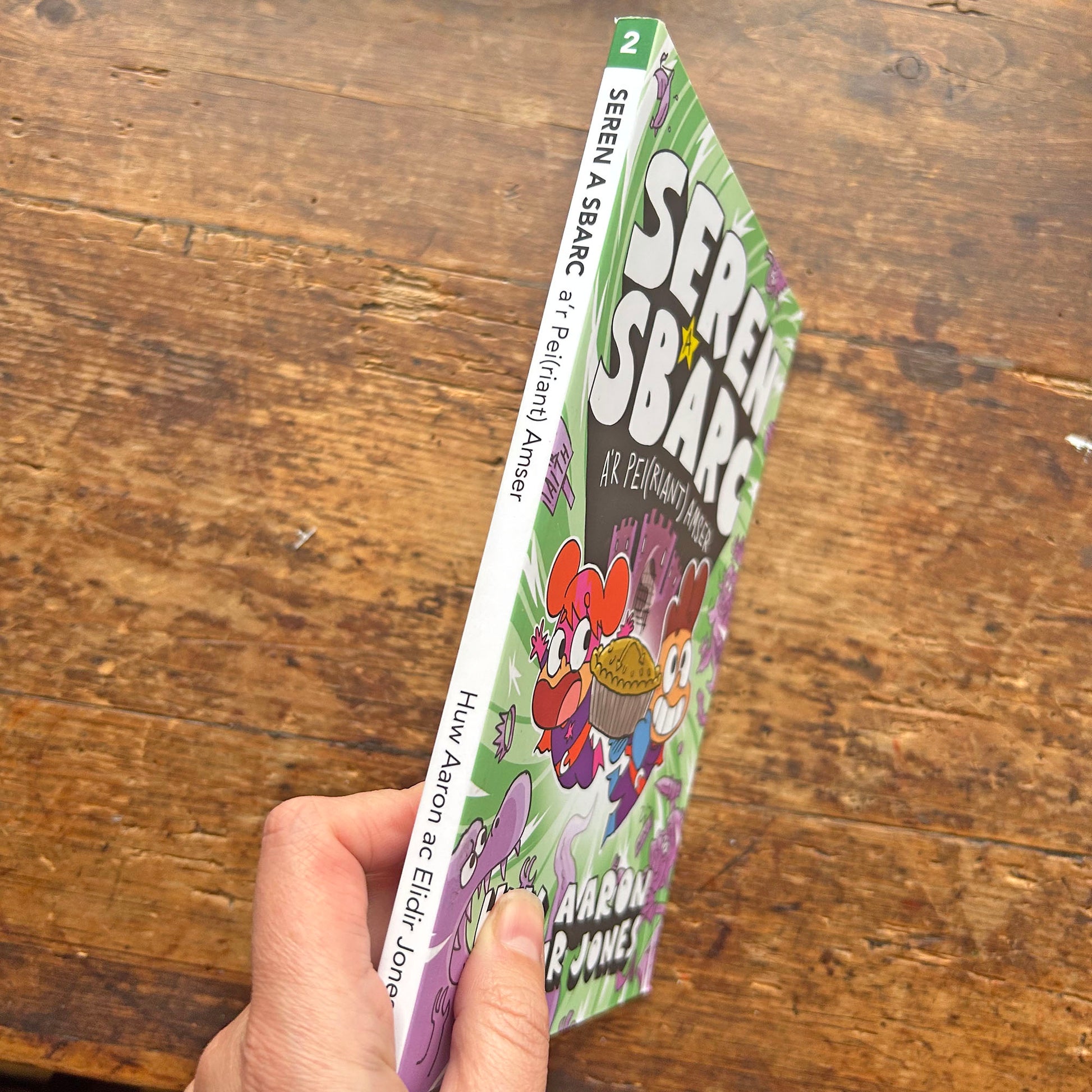 Join a madcap adventure through Welsh history using the tastiest time machine ever invented (well, baked!). With dinosaurs, princes, pirates and battles in their way, will our heroes get home in time? Seren and Sbarc are familiar to children in Welsh schools, and this book is made in an easy-to-read and hilarious comic book style, great for second-language or reluctant readers.