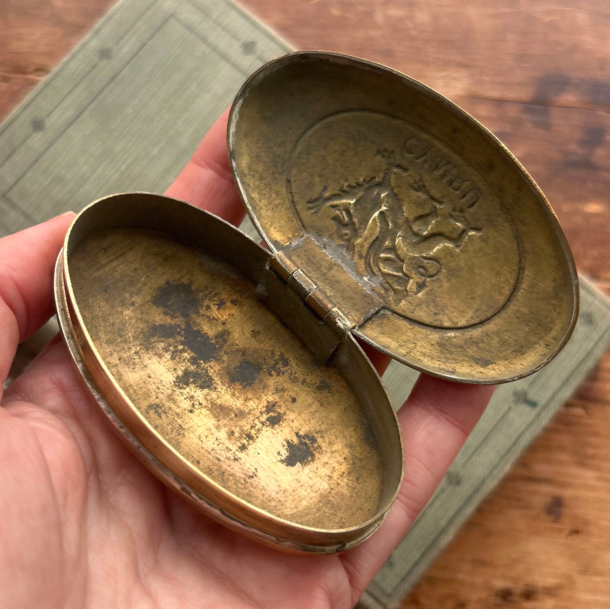 Snuff Box / Brass Oval Tin - Welsh Miner's - Cymru Dragon (Preloved)