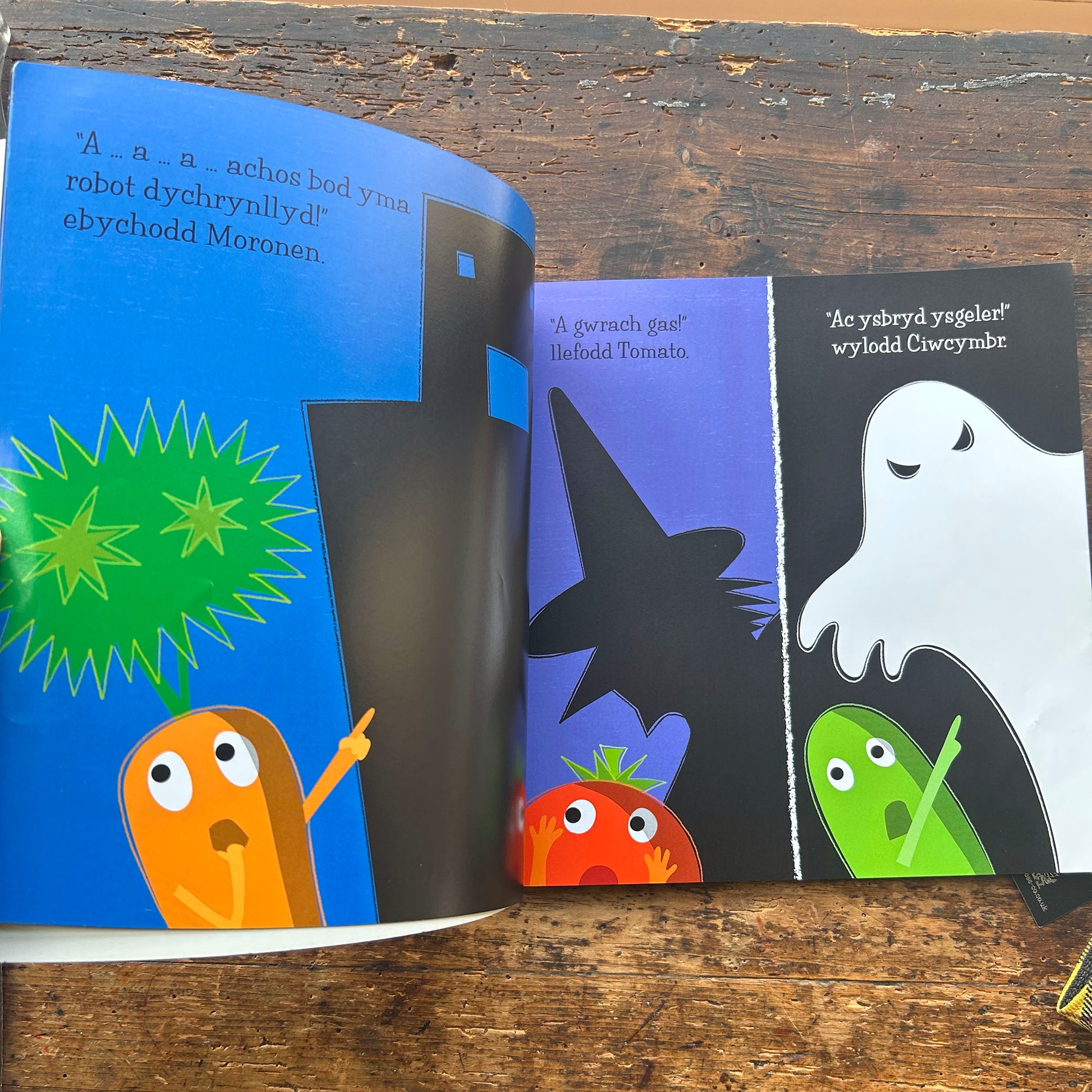 It's fright-time in the supermarket, and the veggies are seriously spooked! Strange shapes, weird noises and eerie shuffling - whatever can behind these ghostly goings-on? Join Supertato and the gang to find out in their latest adventure! A Welsh adaptation of Supertato - Night of the Living Veg! by Sue Hendra and Paul Linnet