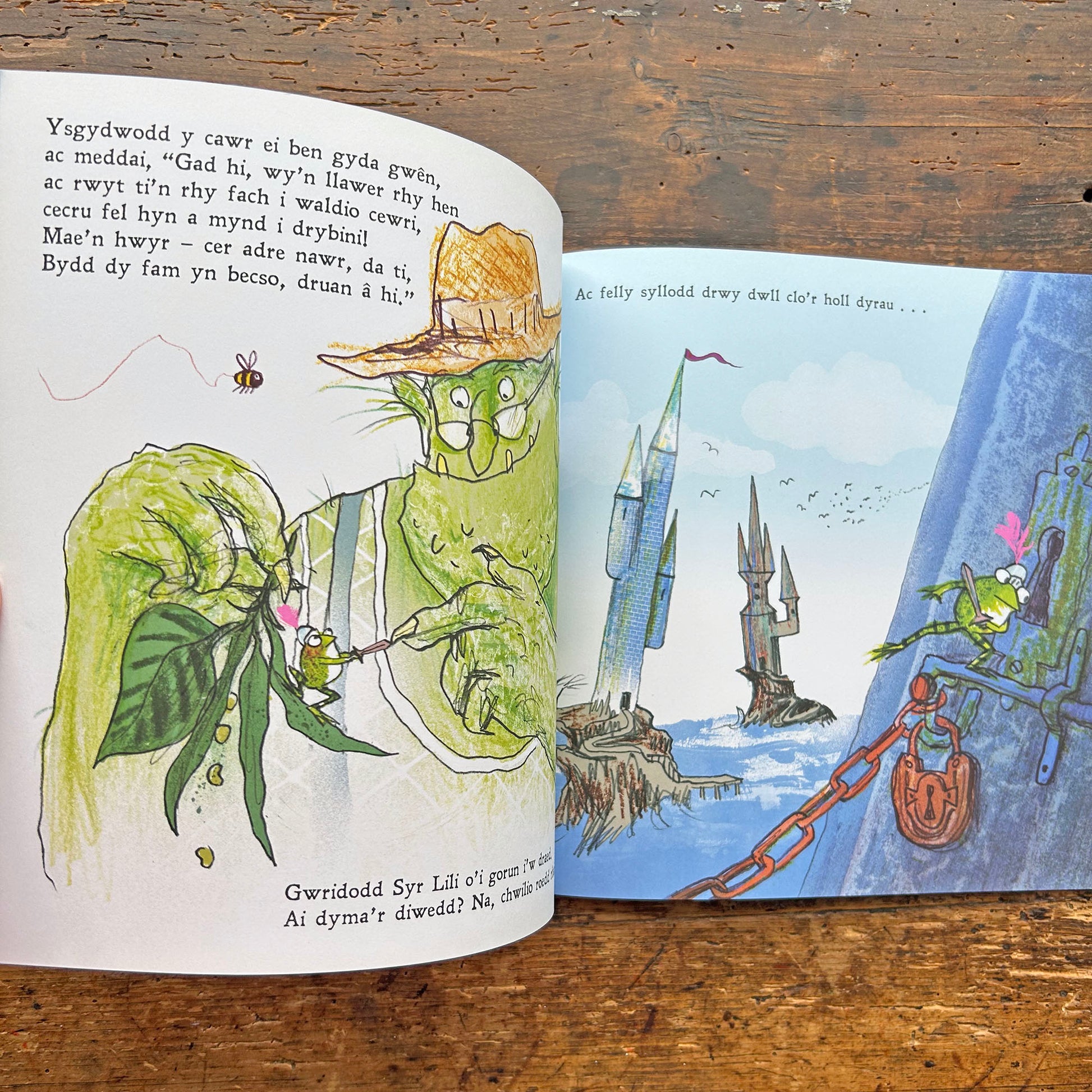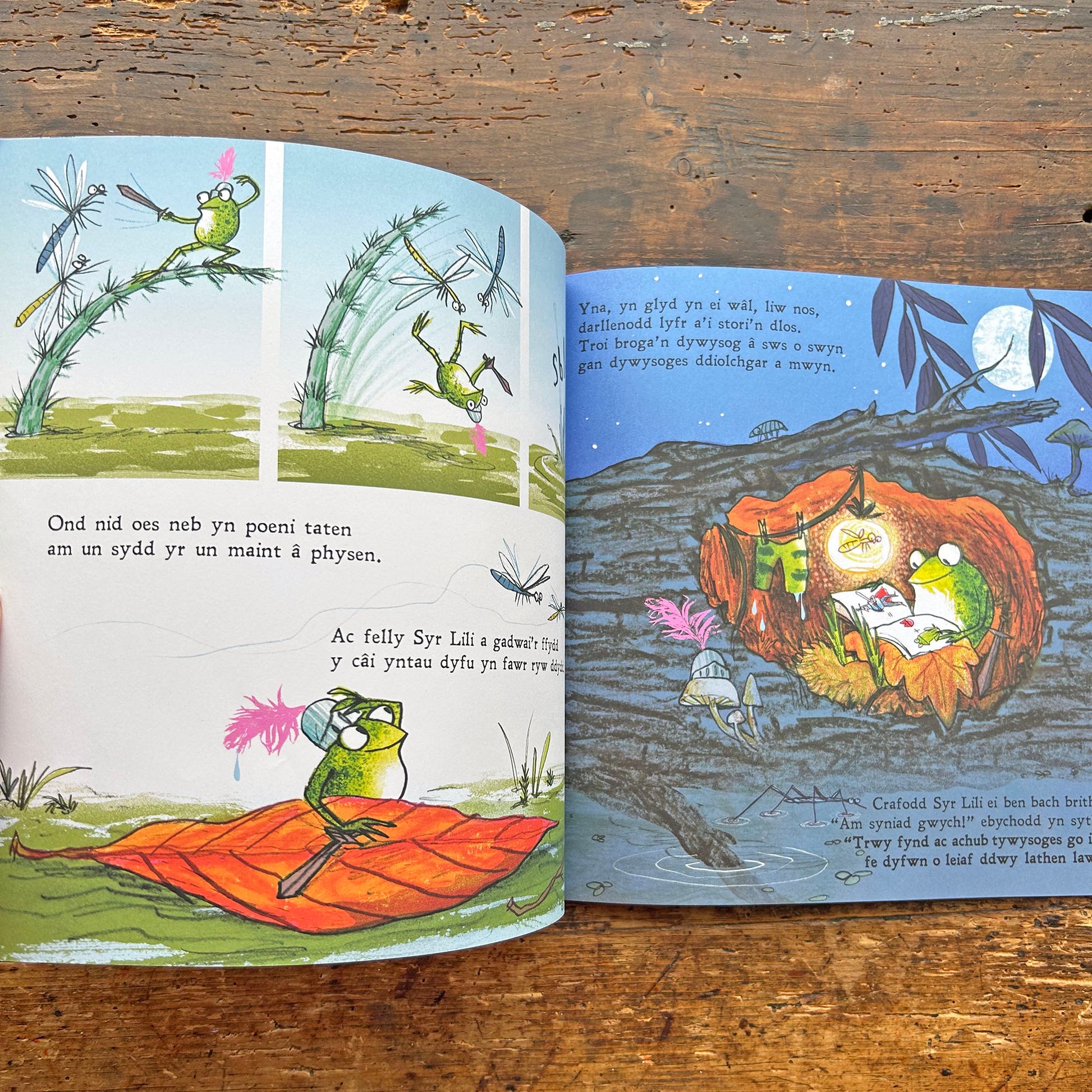 Once upon a time, in a deep dark bog, lived a teeny, tiny speckled frog. Now, he might be tiny (the other frogs call him stuff, like 'weedy pants' and 'sugar puff'). But his ambition is great - to be known as Syr Deilen Lili, the brave and wise! And all he needs to effect this transformation is a kiss from a willing princess. A Welsh adaptation of Sir Lilypad by Aneirin Karadog.