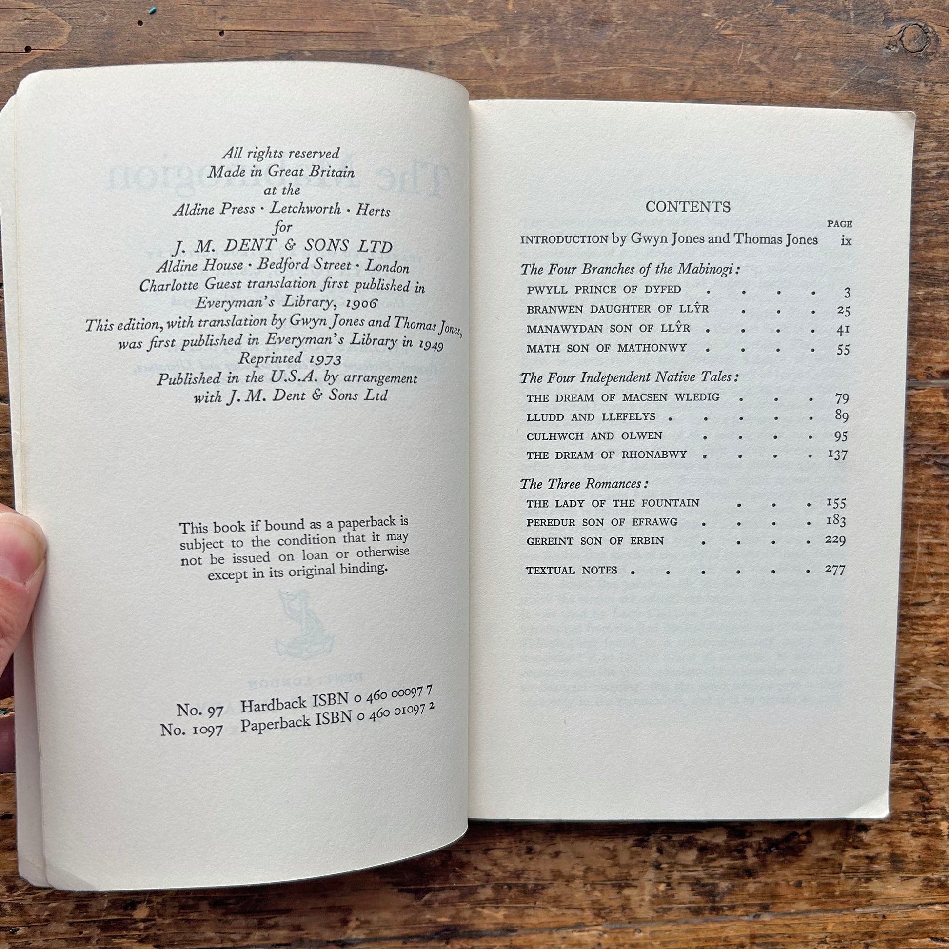 Beautiful vintage edition of The Mabinogion, translated into modern English by Gwyn Jones and Thomas Jones.
