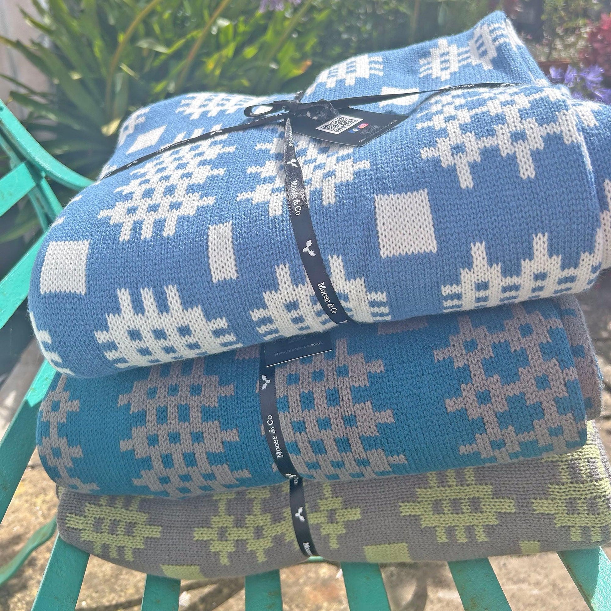 Throw / Blanket - Welsh Tapestry Print - Pigeon Blue