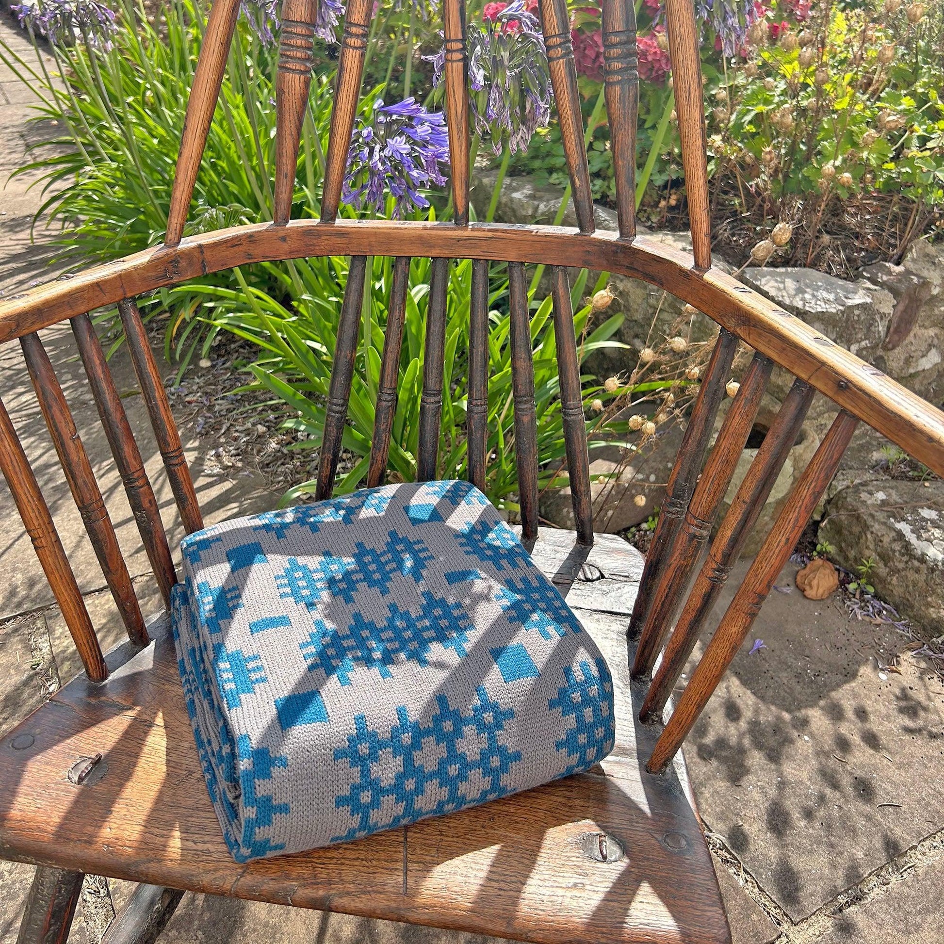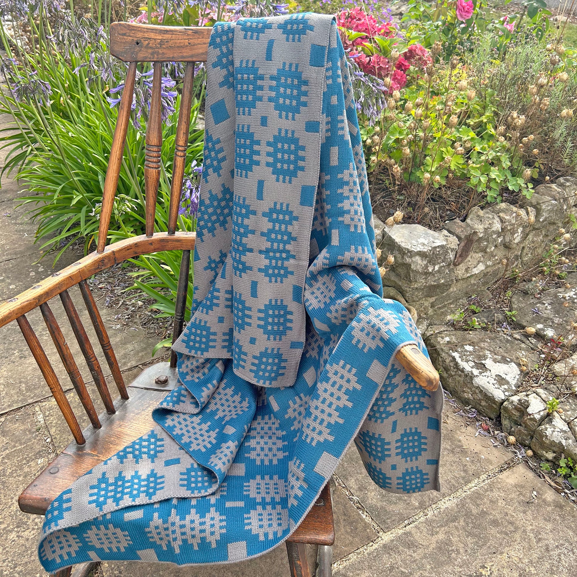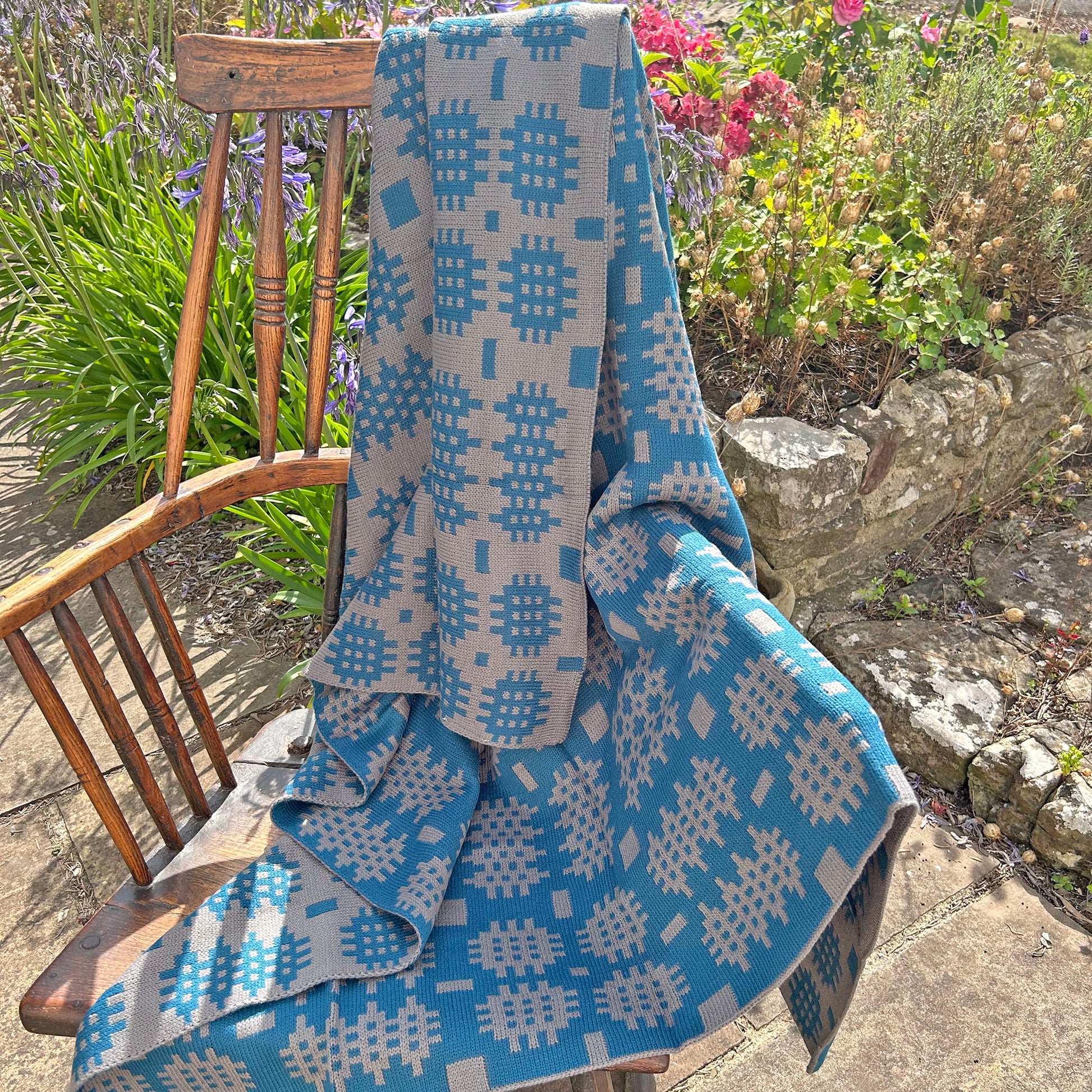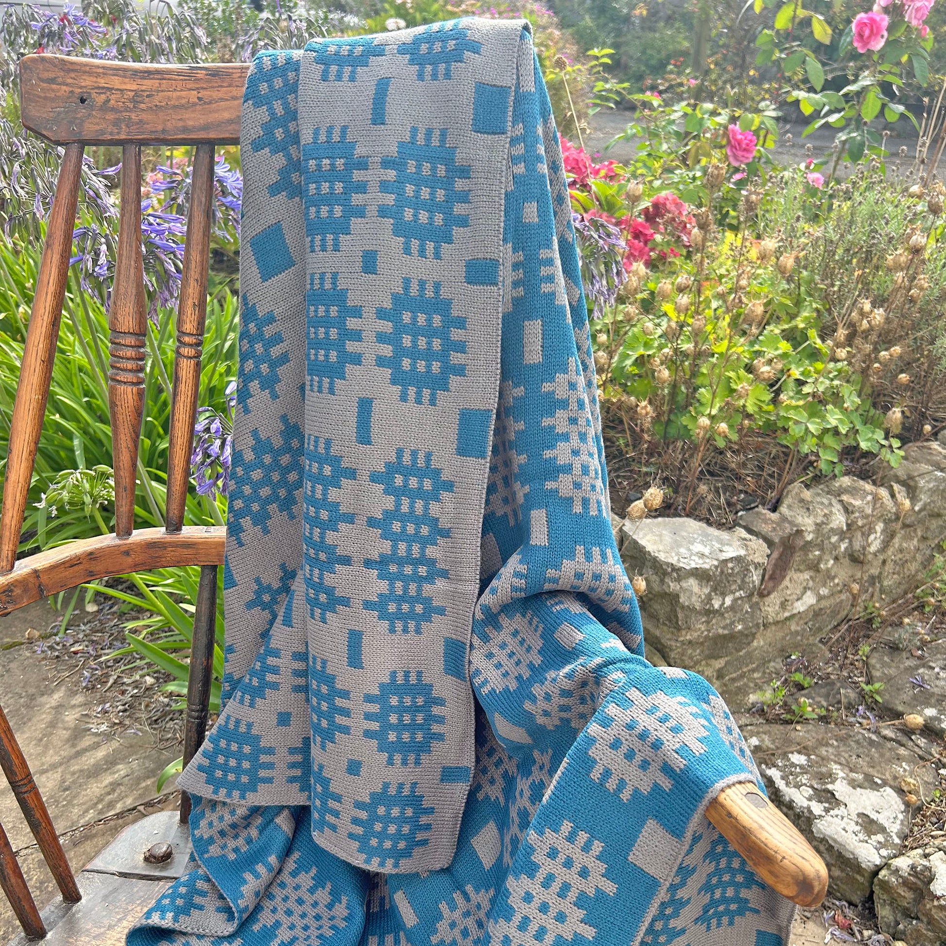 Throw / Blanket - Welsh Tapestry Print - Teal & Grey