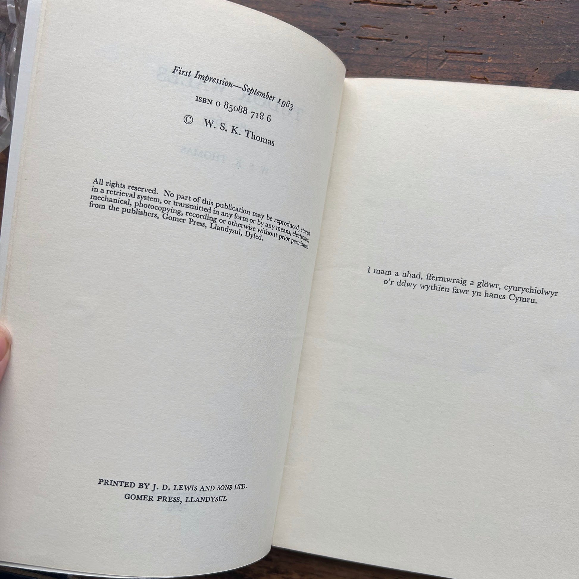 - Llandysul : Gomer Press, 1983 (first edition)