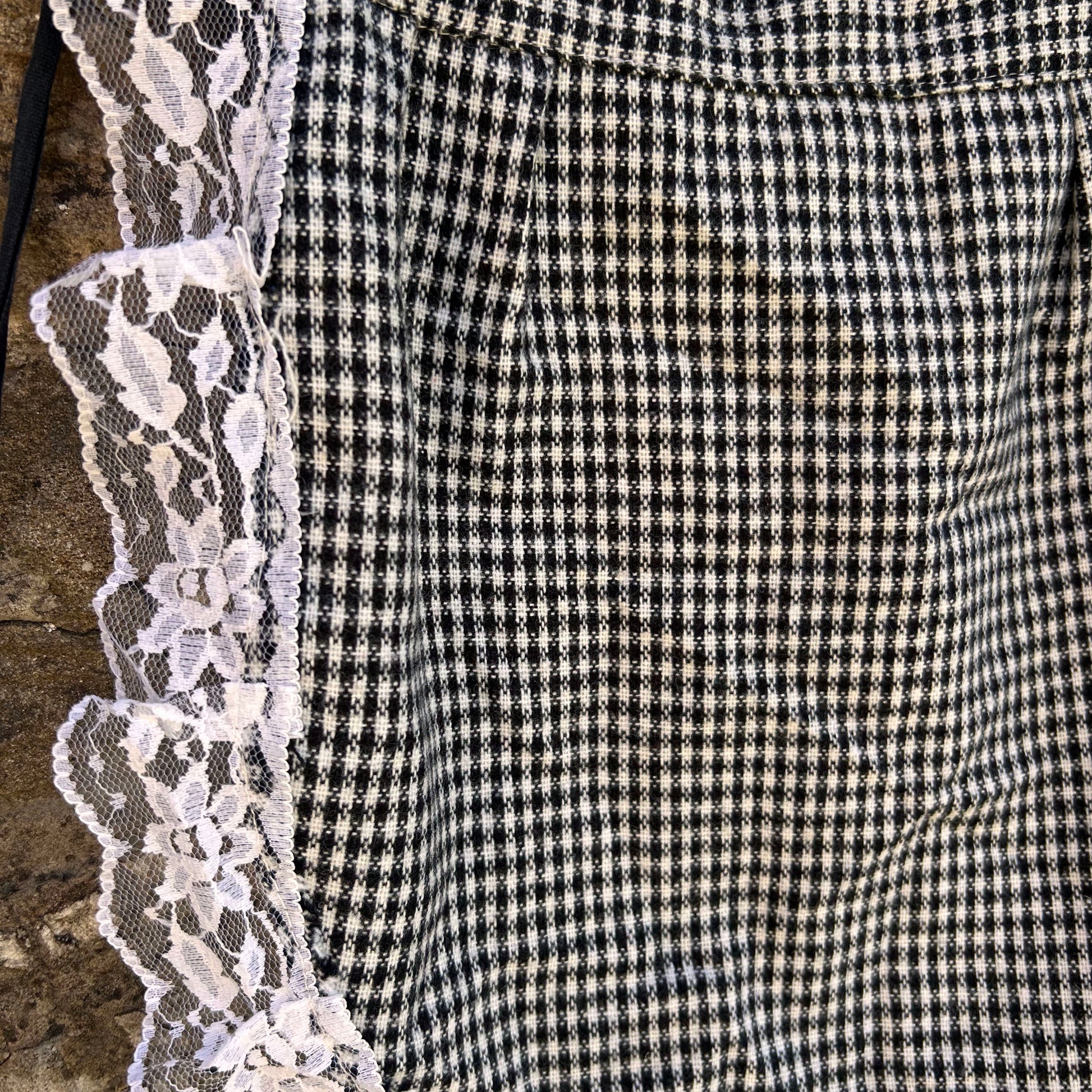 - Black & White Check Apron with Lace Trim with black tie