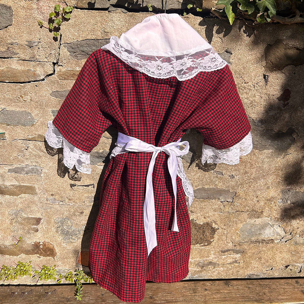 - Black & Red Check Tunic/Coat with Lace Trim to sleeves (with ribbon tie and Hook & Loop Tape fastening)