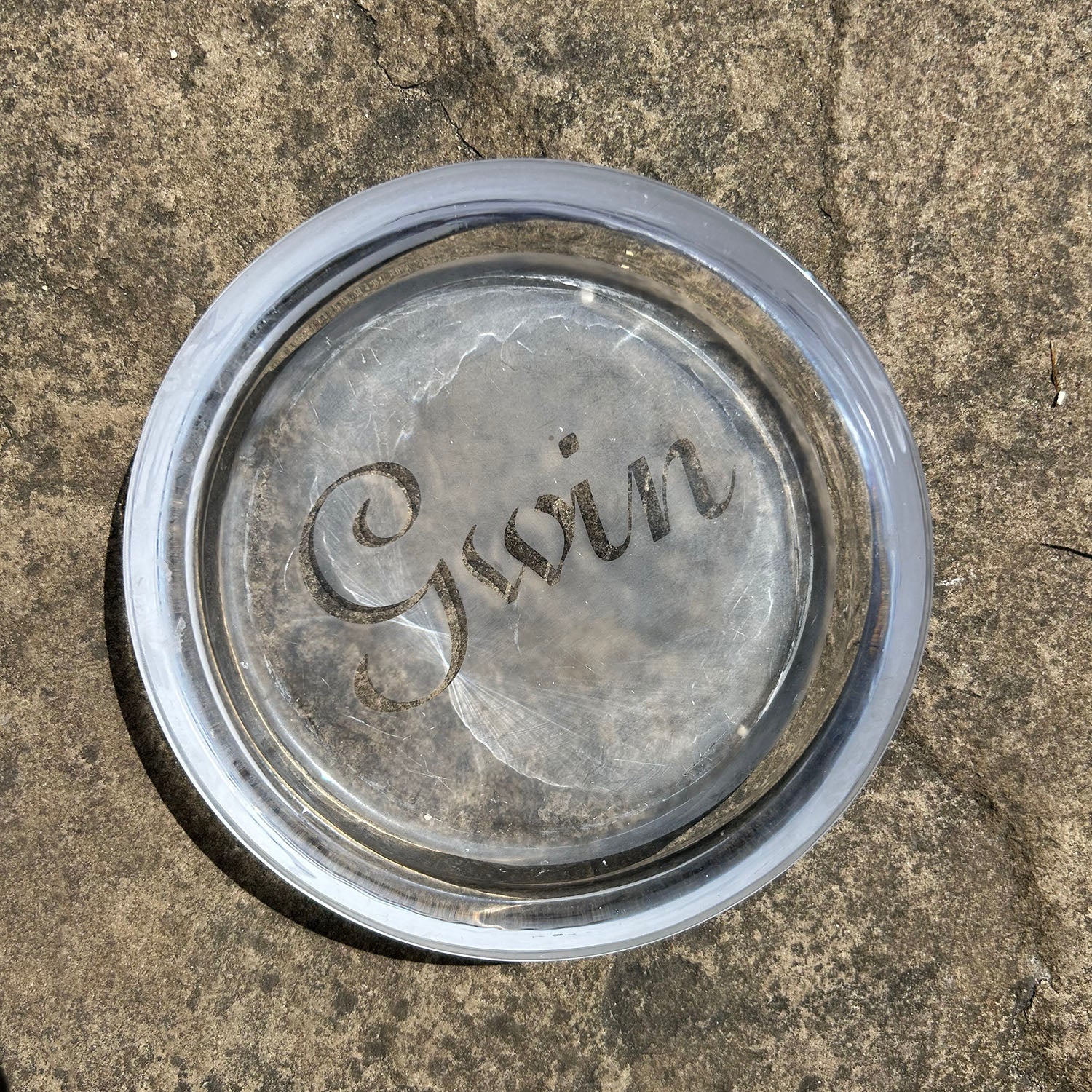 Wine Dish / Bottle Coaster - Hand Etched - Gwin (Preloved)