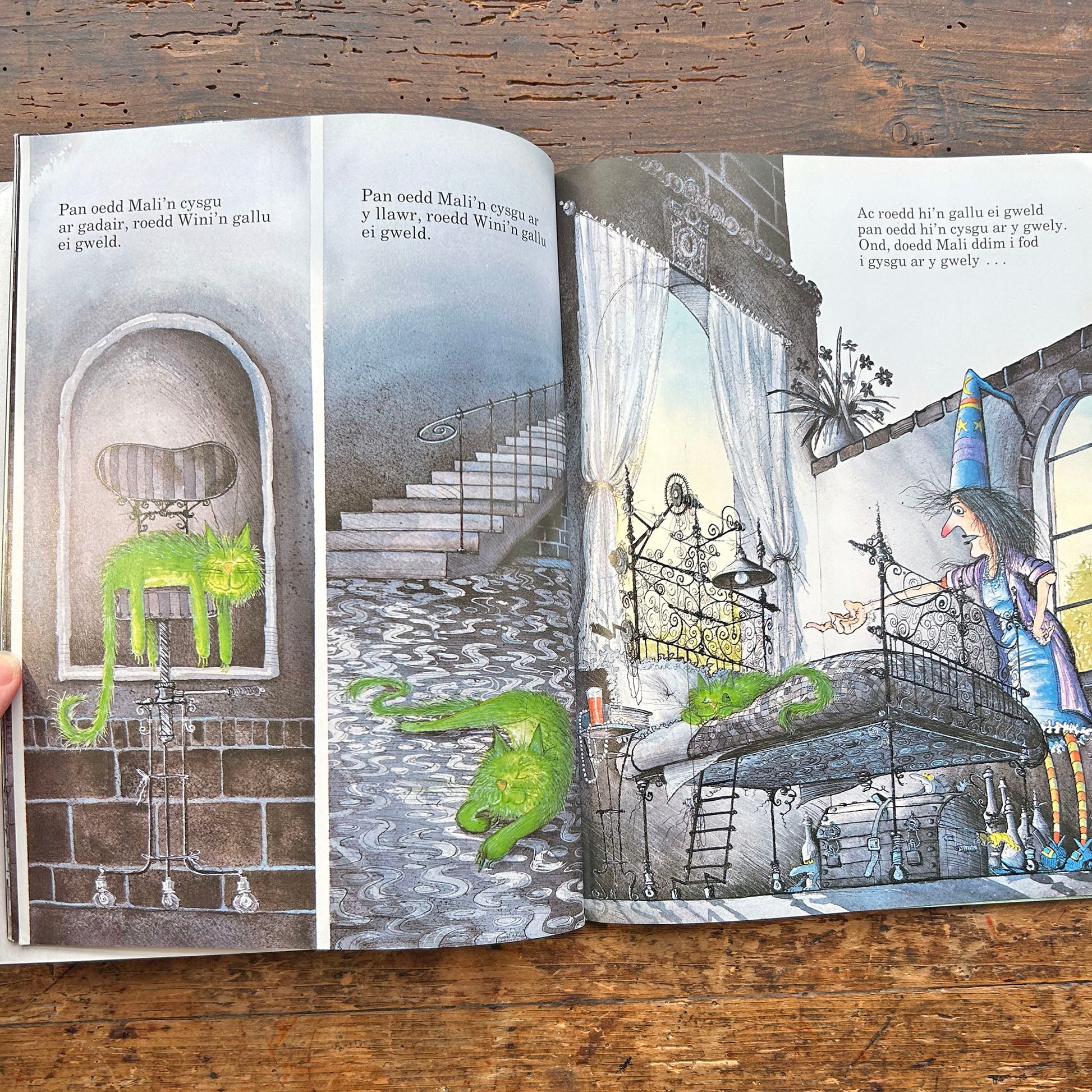 An adaptation of Winnie the Witch, a story about a witch who lives in a black house. She has black chairs and black stairs, black floors and black doors. The trouble is that Winnie's cat, Wilbur, is also black. After sitting on him and tripping over him, Winnie decides to turn Wilbur into a green cat. But then he goes out into the long grass! Winnie is going to need a little magic to make sure she can always see Wilbur . . . A beautifully-crafted story with a colourful final twist.