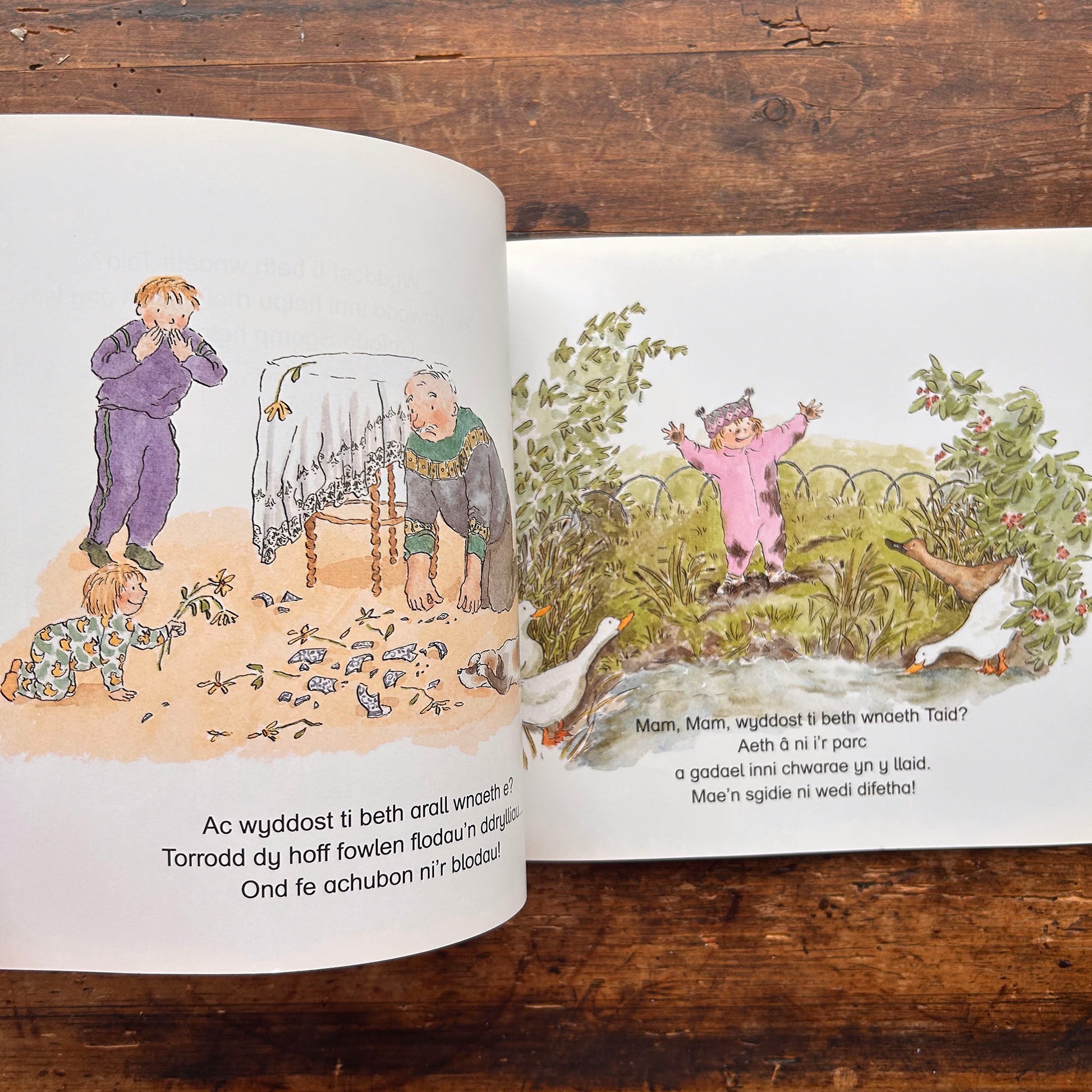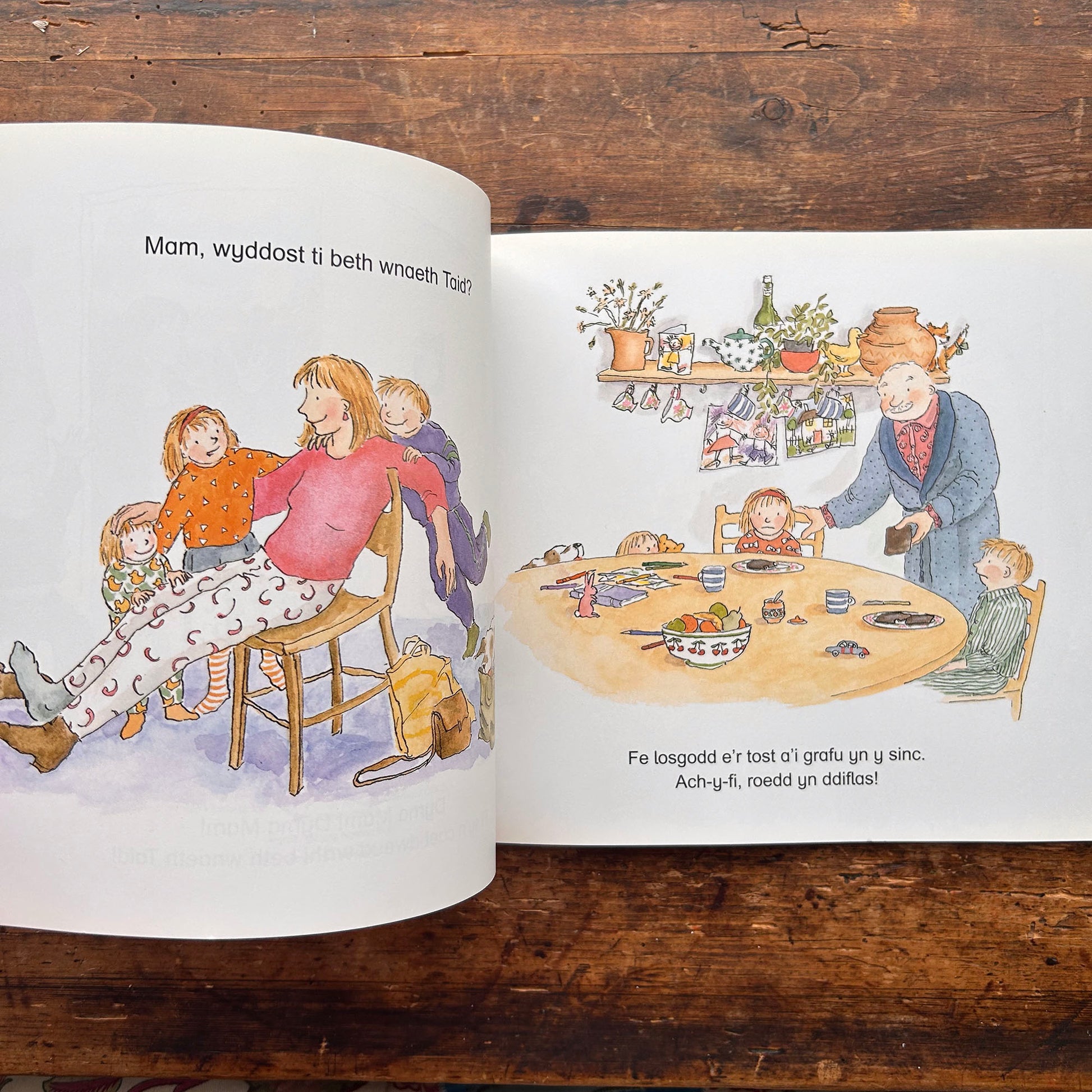 A Welsh adaptation of Do You Know What Grandad Did? a colourfully illustrated account of a day when grandad is in charge of the children.