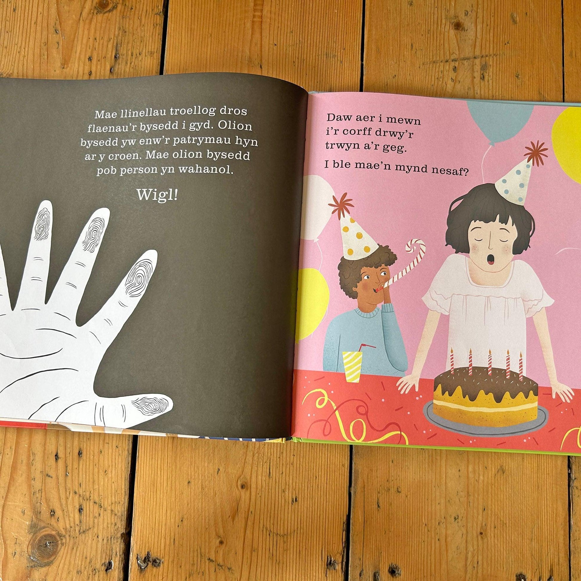 The unique design of the book allows children to discover a “hidden“ image by holding the page up to a bright light, or shining a torch behind the page.