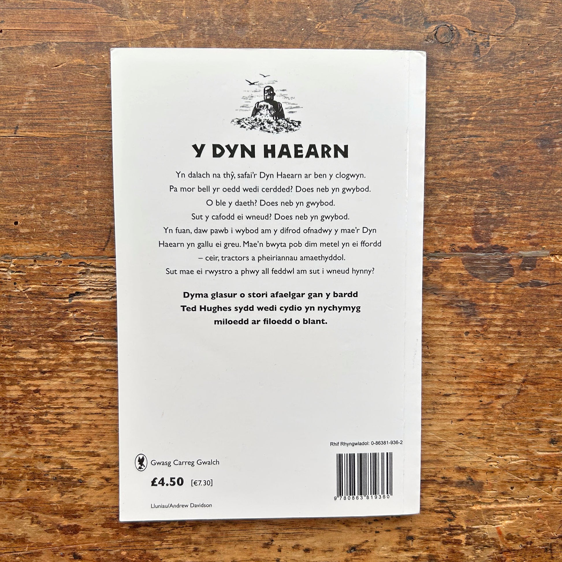 The Welsh translation for "The Iron Man," a 1968 children's novel by Ted Hughes. Translated by Emily Huws and with the stunning original wood engravings from Andrew Davidson.