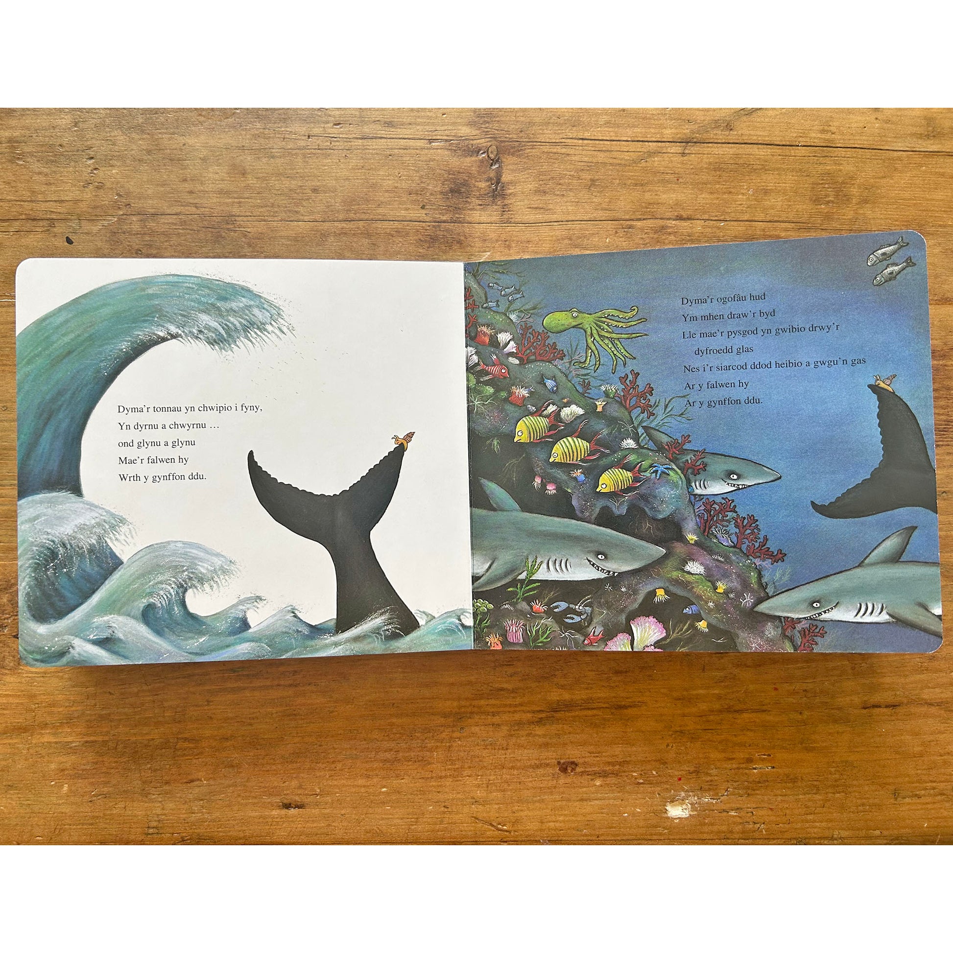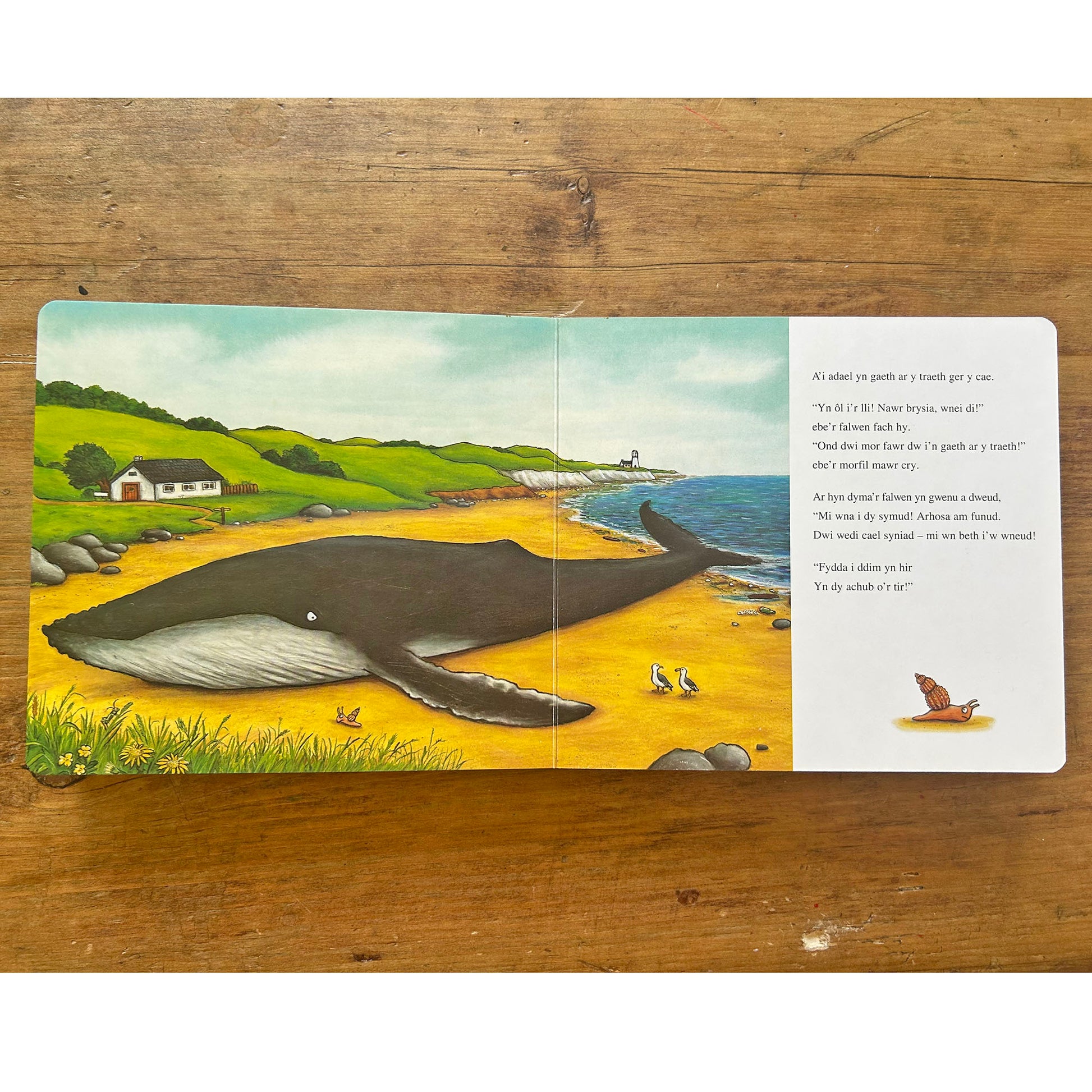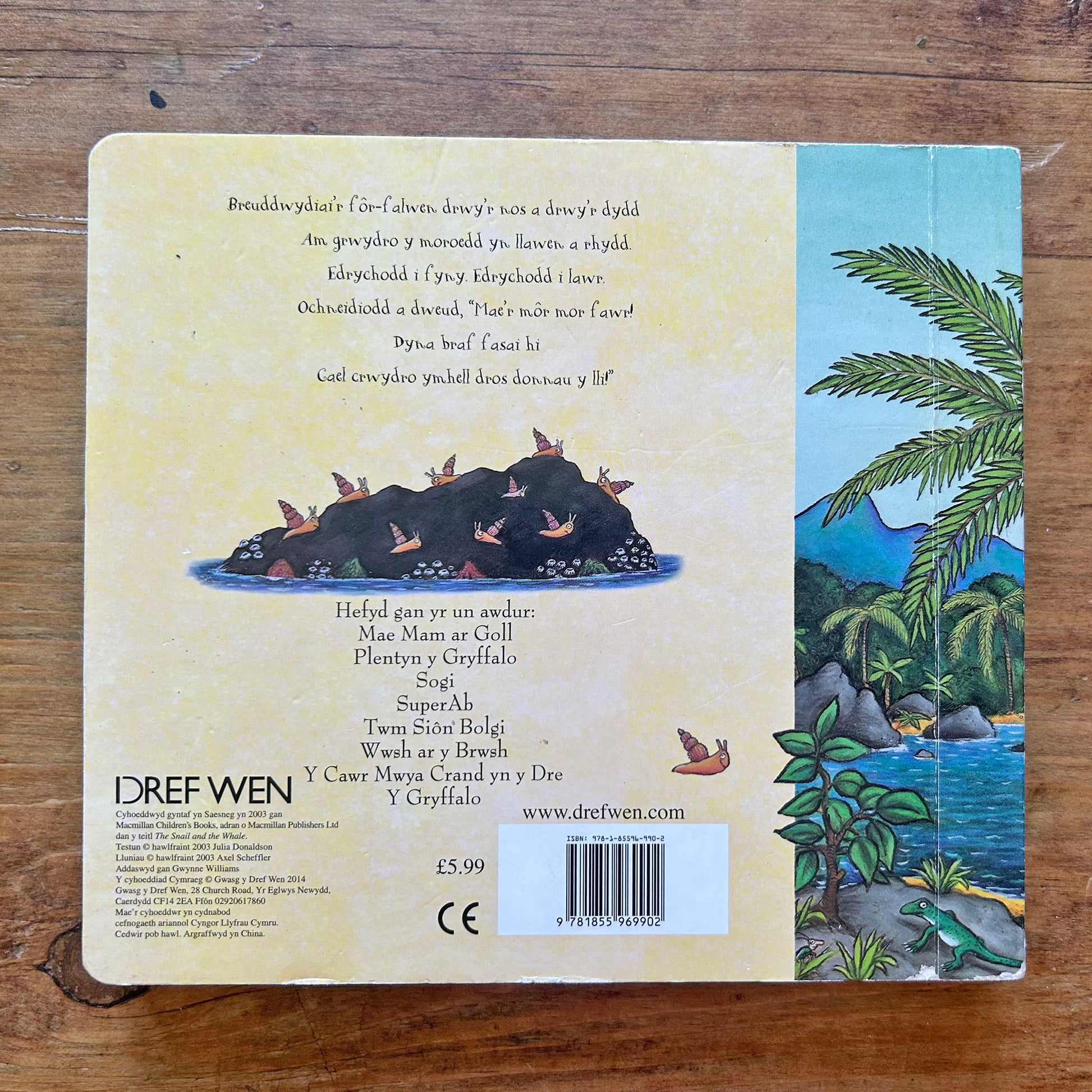 A welsh adaptation of Julia Donaldson's The Snail and the Whale, illustrated by Axel Scheffler and translated by Gwynne Williams
