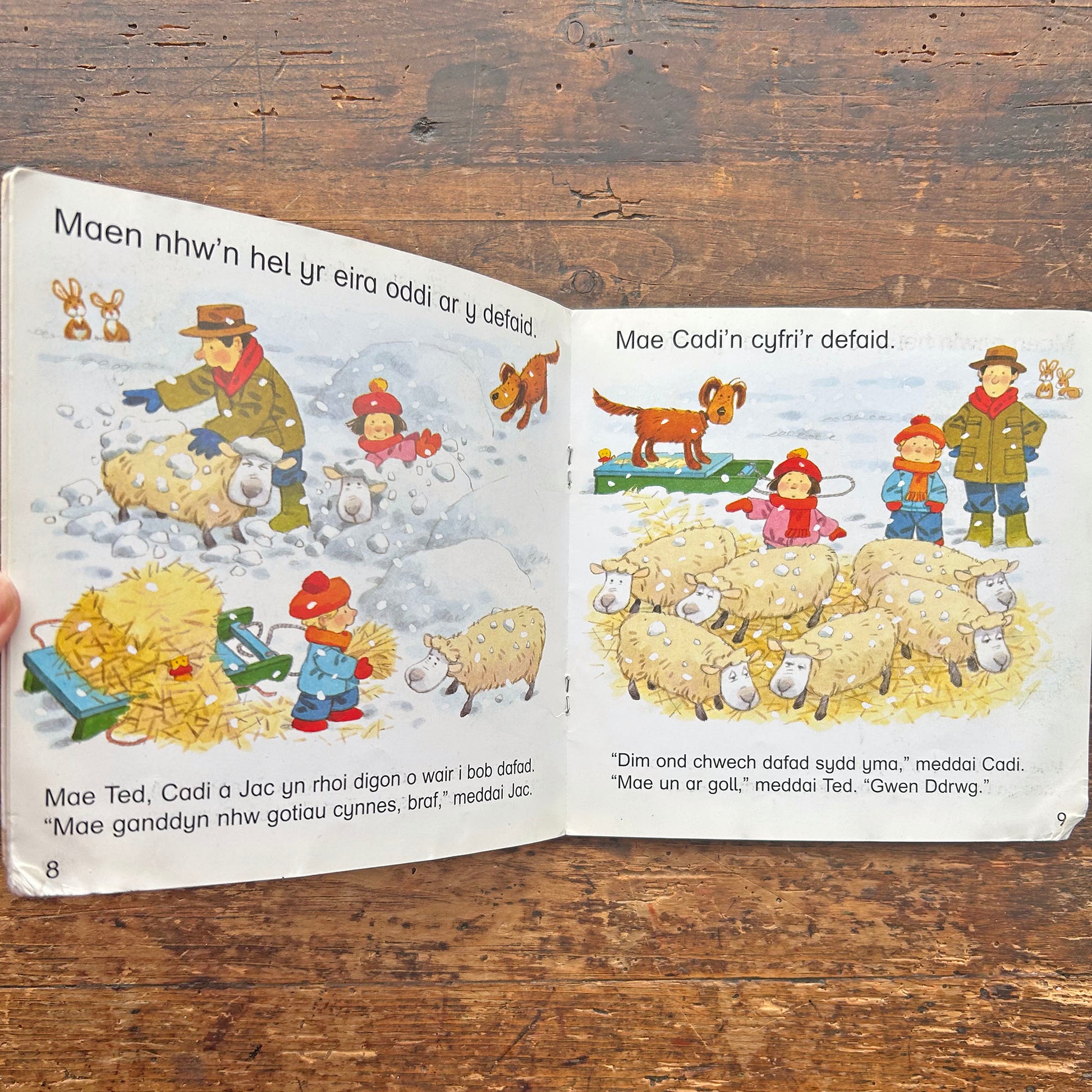 A Welsh adaptation of The Snow Storm by Heather Amery, illustrated by Stephen Cartwright