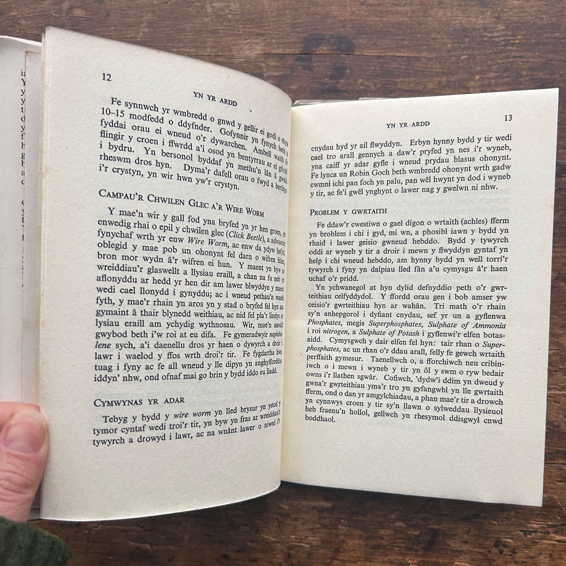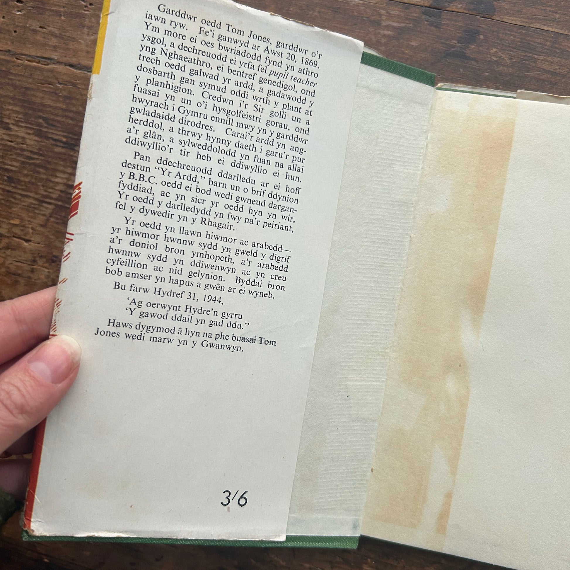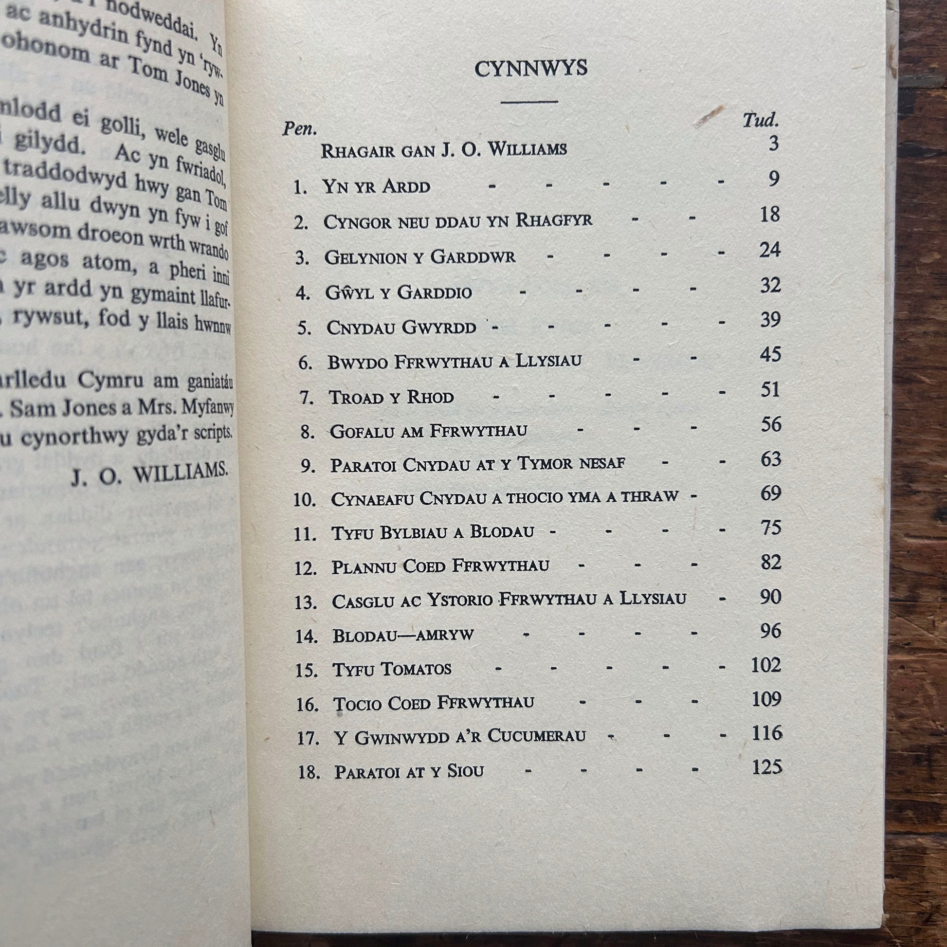 A beautiful book collecting transcripts of Tom Jones' radio talks about gardening and life in the garden (“Sgyrsiau Radio”). A collection of practical and reflective pieces based on broadcasts where Jones discusses gardening topics, tips, observations and the pleasures of tending a garden. Contains eighteen chapters of useful, garden‑related advice and commentary written in an engaging, accessible style for listeners/readers interested in horticulture.